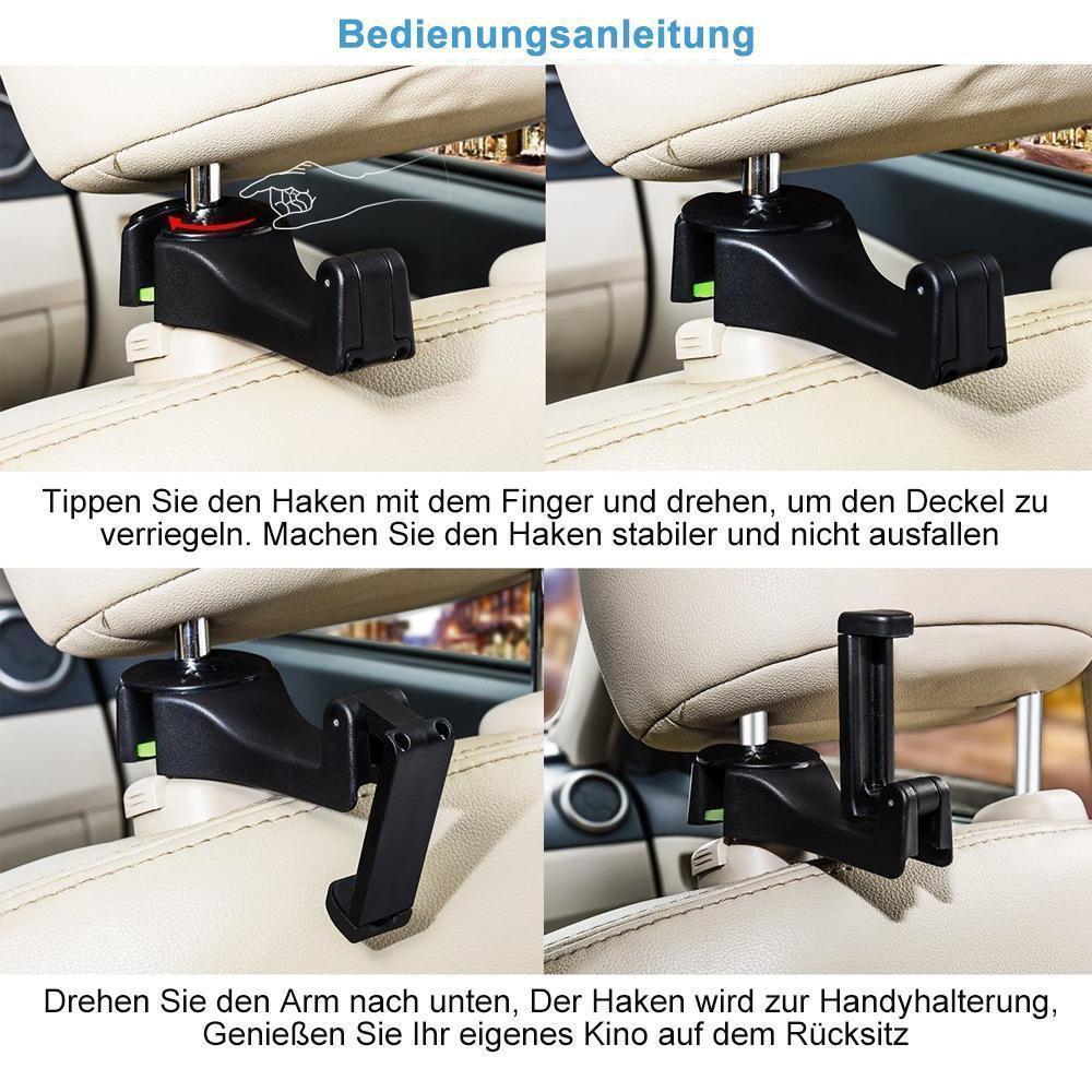 Wenn Sie auf dem Rücksitz langweilig sind und das Video mit Ihrem Telefon / Pad ansehen möchten, können die Auto-Haken als ein Telefonständer fungieren, so dass Sie das Video bequem anschauen können, ohne es mit Ihrer Hand zu halten.