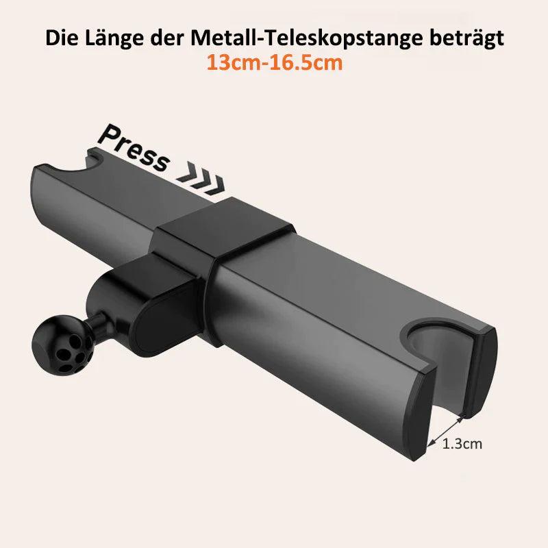 360-Grad-Drehung ermöglicht es Ihnen, jeden gewünschten Winkel zu drehen, Sie müssen nur das erweiterbare Bein der Rücksitz-Kopfstützenhalterung einstellen, so dass es sofort installiert werden kann.