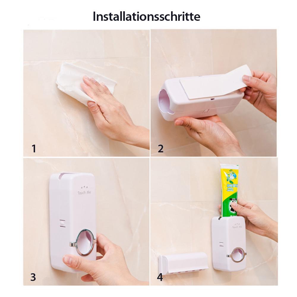 Ein Zahnbürstenhalter ist ein übliches Gerät, aber ein Halter für einen automatischen Zahnpastaspender? Eine praktische Ergänzung im Badzimmer!