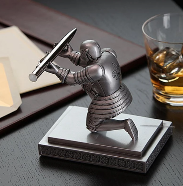 • RITTER STIFTHALTER :Einzigartiges Design, das Erscheinungsbild dieses Stifthalters ist ein Ritter auf einem Knie kniet nieder und hebt die Hände, die ganz und besondere ist cool.
