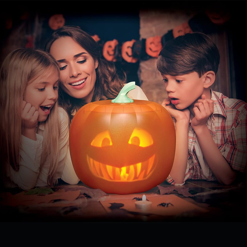 • Einfache Drei-Tasten-Steuerung: Die animierte Kürbisprojektion ist gleichzeitig mit einer Überspringen-Taste und einer Lauter- und Leiser-Taste ausgestattet. Mit der Skip-Taste können Sie nach Belieben zwischen Liedern und Witzen wechseln und mit den Tasten Lauter und Leiser die Lautstärke regeln.