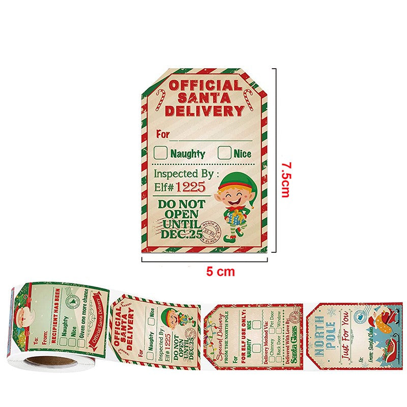 🎅Ausreichende Menge: Sie erhalten 1 Rolle Weihnachtsmann-Geschenkanhänger-Etiketten in 4 verschiedenen Stilen, 50 Stück für jedes Design, 200 Stück insgesamt, genug, um Ihren verschiedenen dekorativen Anforderungen an Weihnachten gerecht zu werden