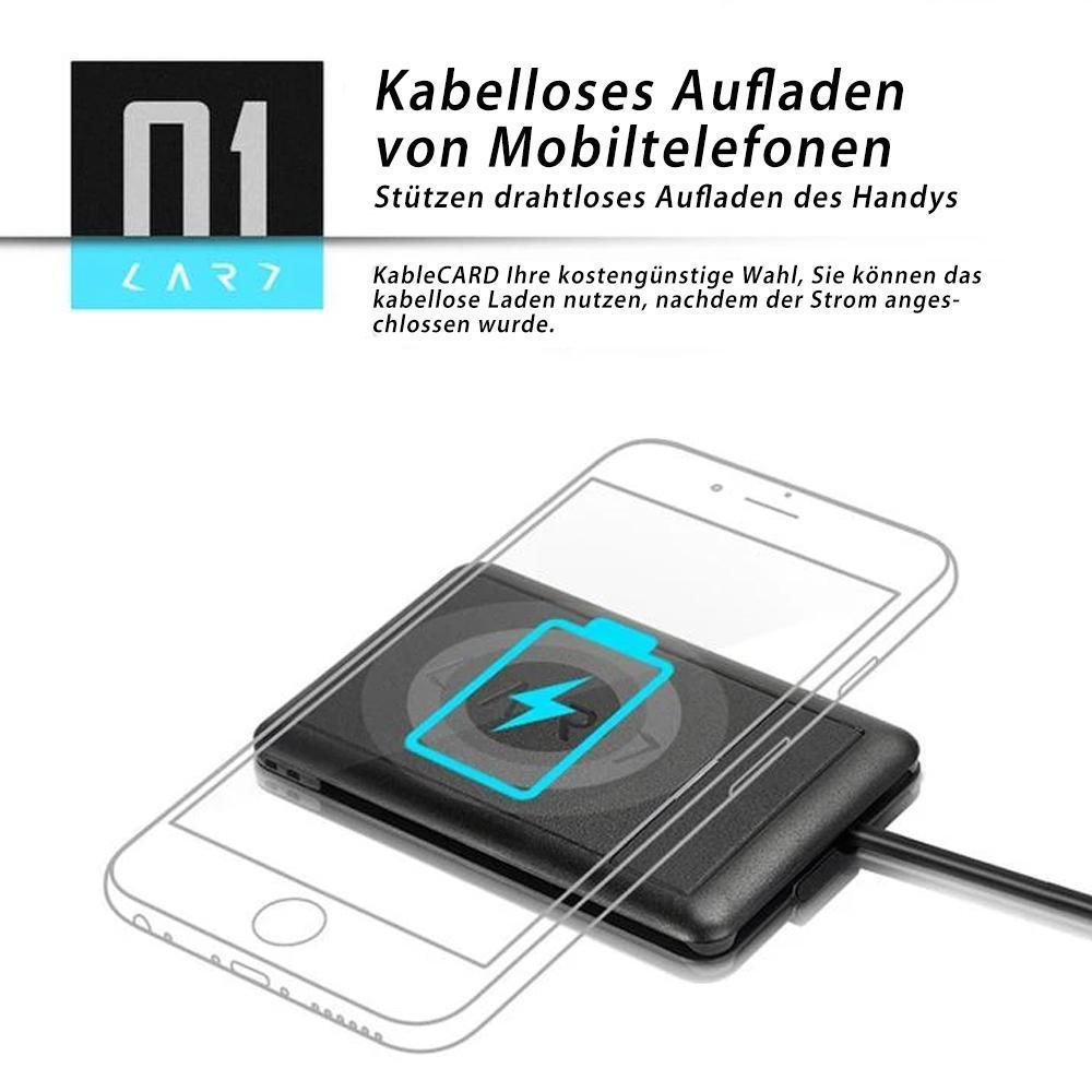 - Unterstützung für kabelloses Aufladen von Mobiltelefonen KableCARD unterstützt kabelloses Aufladen. Das kabellose Aufladen kann je nach Bedarf nach dem Anschließen des Stroms, kabellos oder verkabelt durchgeführt werden. Kabelloses Laden im vertikalen Modus