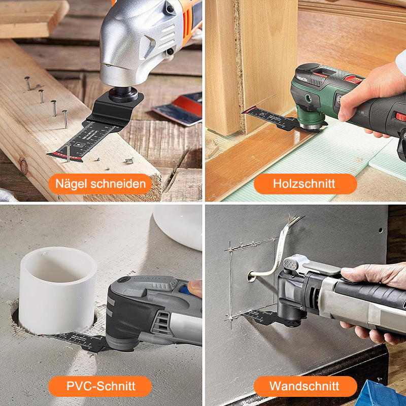 【Breites Einsatzspektrum】: Dieses Set mit oszillierenden Sägeblättern enthält 20 oszillierende Werkzeugblätter zum Schneiden von Holz, weichem Metall und Kunststoff. Diese oszillierenden Sägeblätter können eine Vielzahl von Anforderungen erfüllen und können professionell in der Werkstatt, im Haushalt oder an anderen Orten eingesetzt werden.