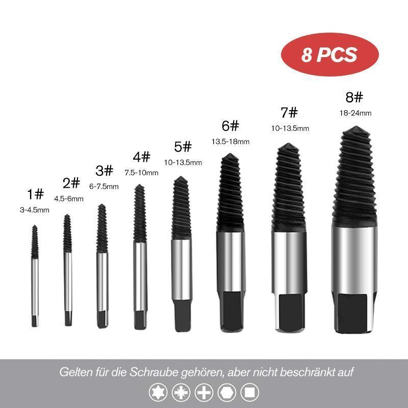 • 8PCs Set verschiedene Größen des Schneckenextraktors für unterschiedliche Anforderungen. Es kann einige der üblichen Schraubendreher entfernen kann nicht zerlegt werden beschädigte Bolzen, Schrauben, Bolzen und Rohre. Umgekehrte Gewindebohrer entfernen leicht Schrauben, Bolzen, Stehbolzen und Rohrverschraubungen.