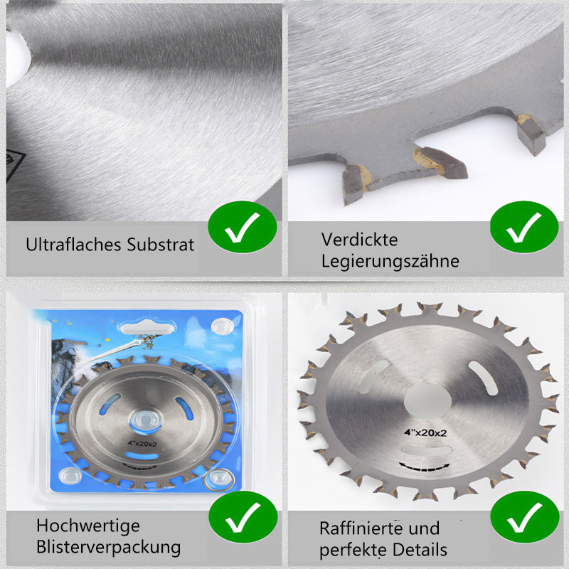 Material: Runde Schneidklingen bestehen aus langlebigem, hochwertigem legiertem Stahl mit gehärteten und schärferen Hartmetallzähnen für eine effiziente Holzbearbeitung.