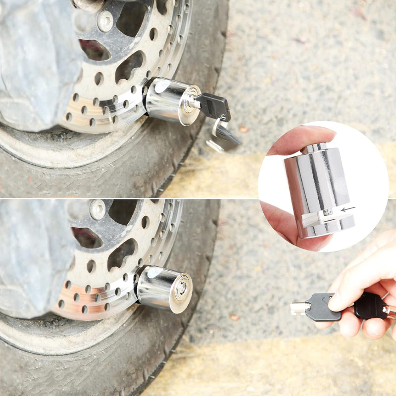🏍Ultimative Tragbarkeit: Dieses Motorrad-Scheibenschloss ist klein, leicht und einfach zu tragen, sodass Sie es bequem überallhin mitnehmen können. Es eignet sich für Motorräder, Mountainbikes, Elektroroller und jedes andere Fahrzeug mit Scheibenbremse.