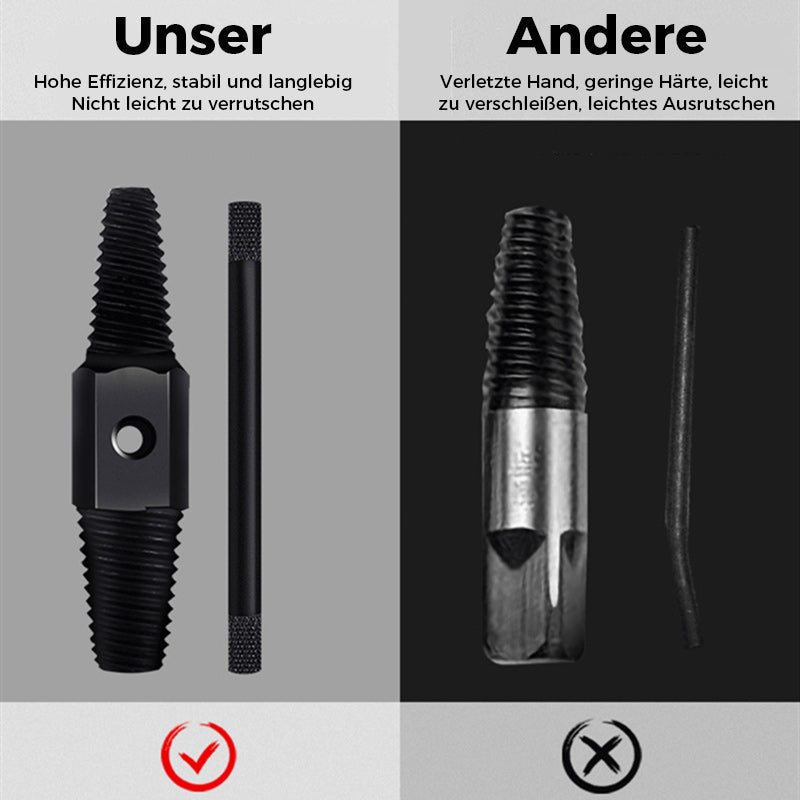 Hochwertiges Material: Das Schraubenentfernungswerkzeug besteht aus kohlenstoffhaltigem Stahl. Die Oberfläche ist mit einer Rost- und Korrosionsschutzbehandlung behandelt, die nicht leicht zu rosten ist.