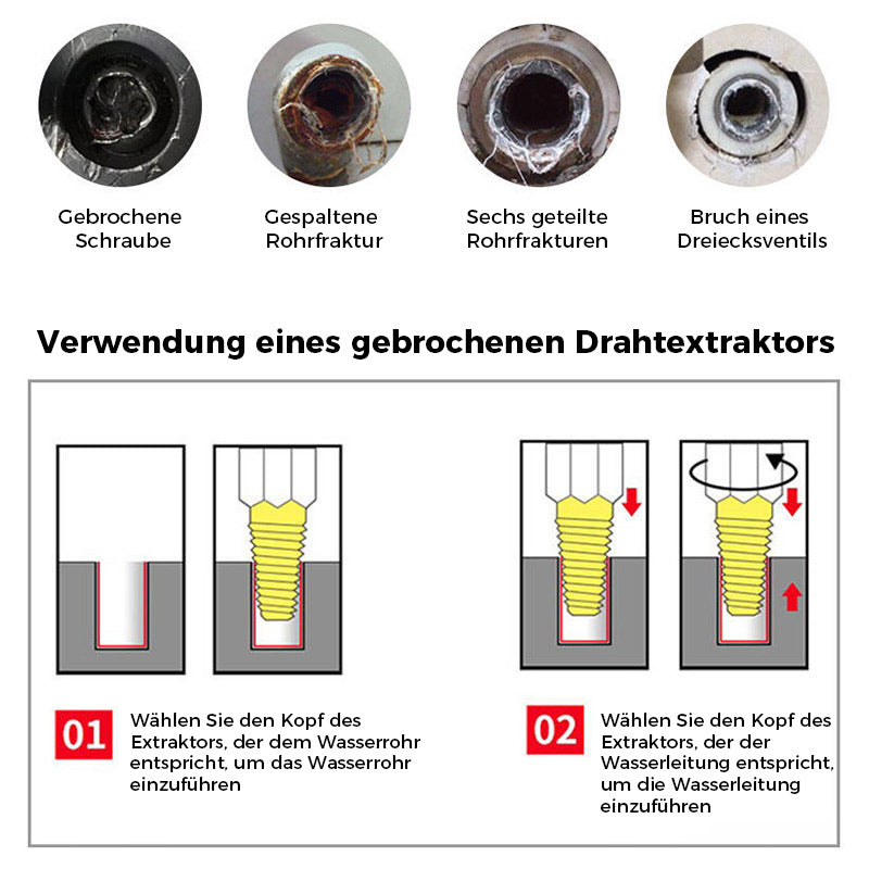 Starke Kompatibilität: Der Schneckenextraktor ist für Rohre mit einem Durchmesser von 1/2 Zoll, 3/4 Zoll und anderen Rohren mit großem Durchmesser geeignet.
