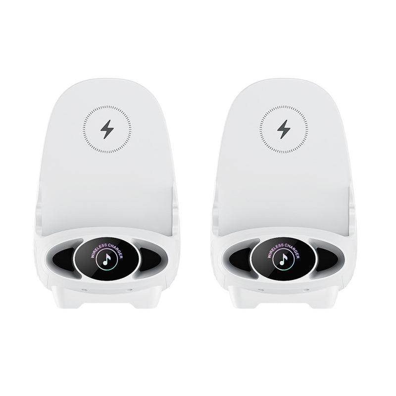 Einzigartige und neuartige kabellose Lade-/Handy-Ständerfunktion, kann horizontal oder vertikal platziert werden, und an der Unterseite befindet sich ein Schallloch, das den Klang beim Abspielen des Mobiltelefons dreidimensionaler macht.