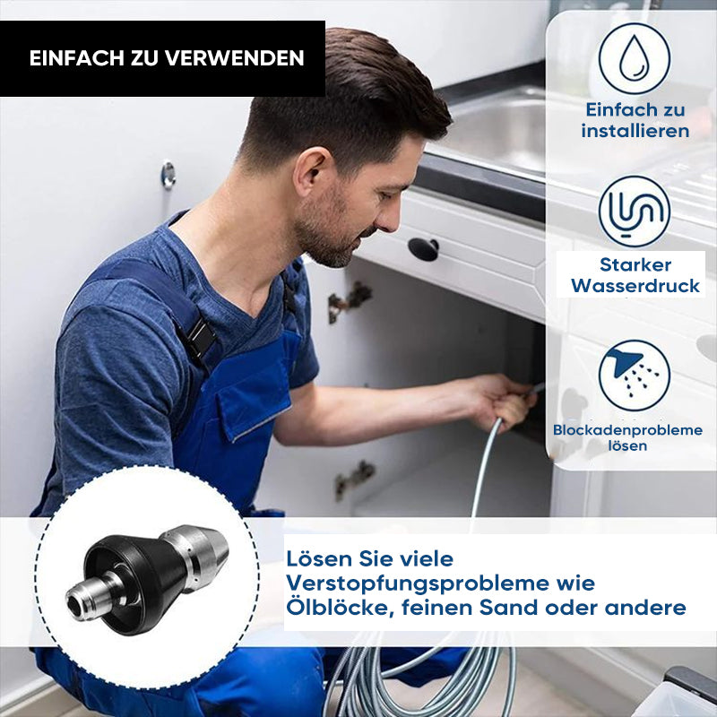 Hochleistung: Die Kanaldüse gleitet leicht in Abflüsse. Ideal zum Spülen von Schmutz oder zum Reinigen fester Rohre.