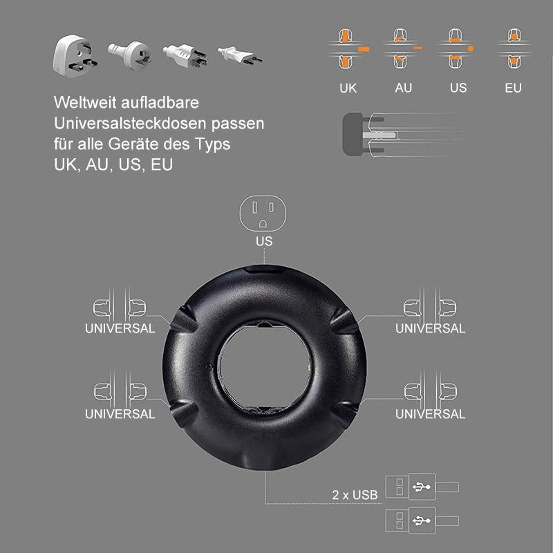 • Insgesamt 5 Universalsteckdosen (USA, Europa, Großbritannien, Hongkong, Macao, Taiwan)