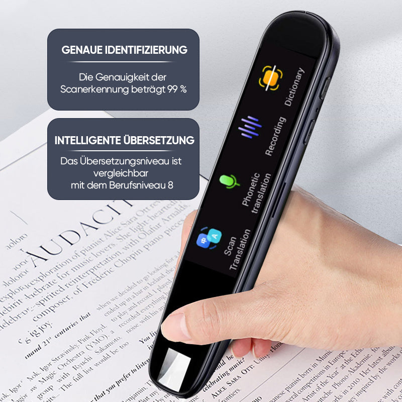 【Effizient】 Unterstützt das Scannen mehrerer Textzeilen. Der Stift kann verschiedene Arten von Oberflächen und Schriftarten scannen, z. B. gedruckten Text, Computerbildschirme, Handschriften und mehr.