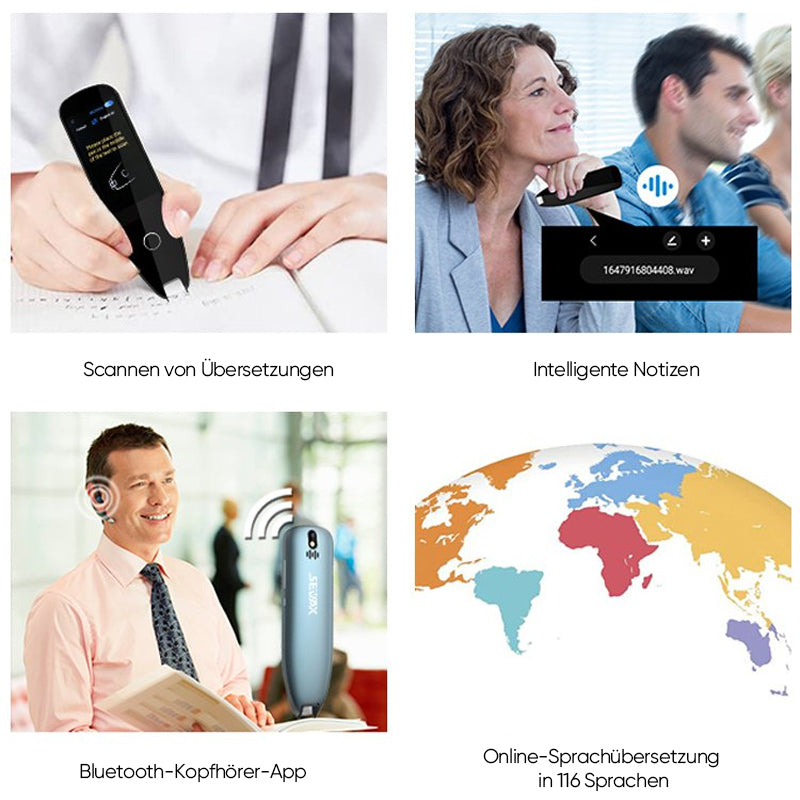 【Echtzeitübersetzung in 116 Sprachen】Scannen Sie den Übersetzungsstift, um eine Online-Sprachübersetzung zu erhalten und die Stimme automatisch in Text umzuwandeln. Wenn Sie mit ausländischen Freunden sprechen müssen, können Sie schnell grenzüberschreitende Kommunikationserfahrungen vermitteln und Sprachbarrieren überwinden.