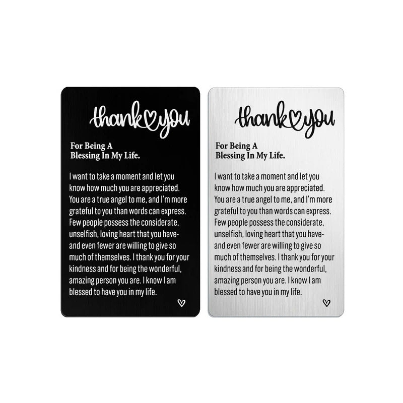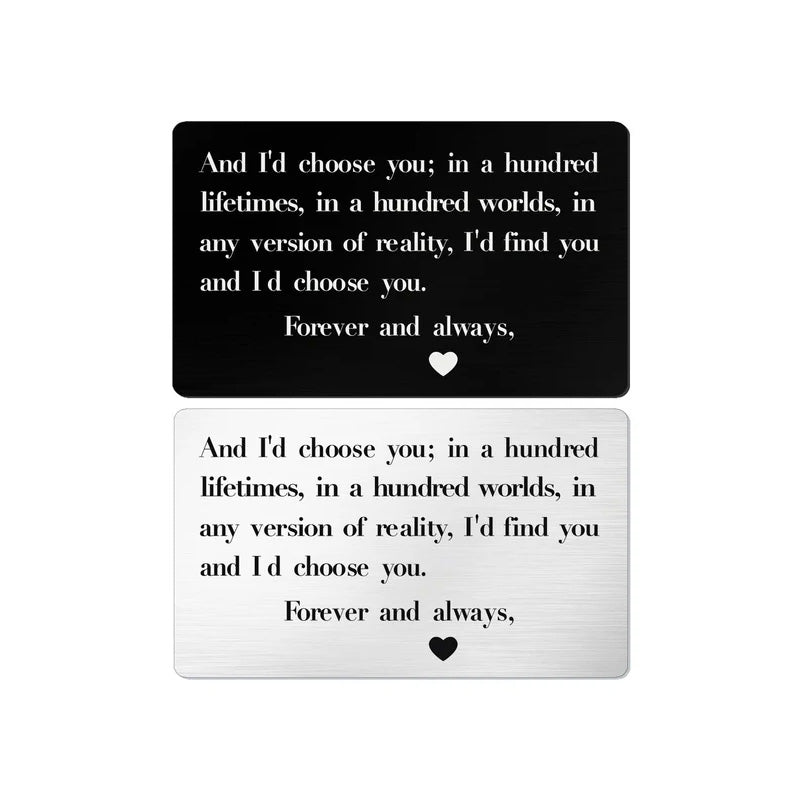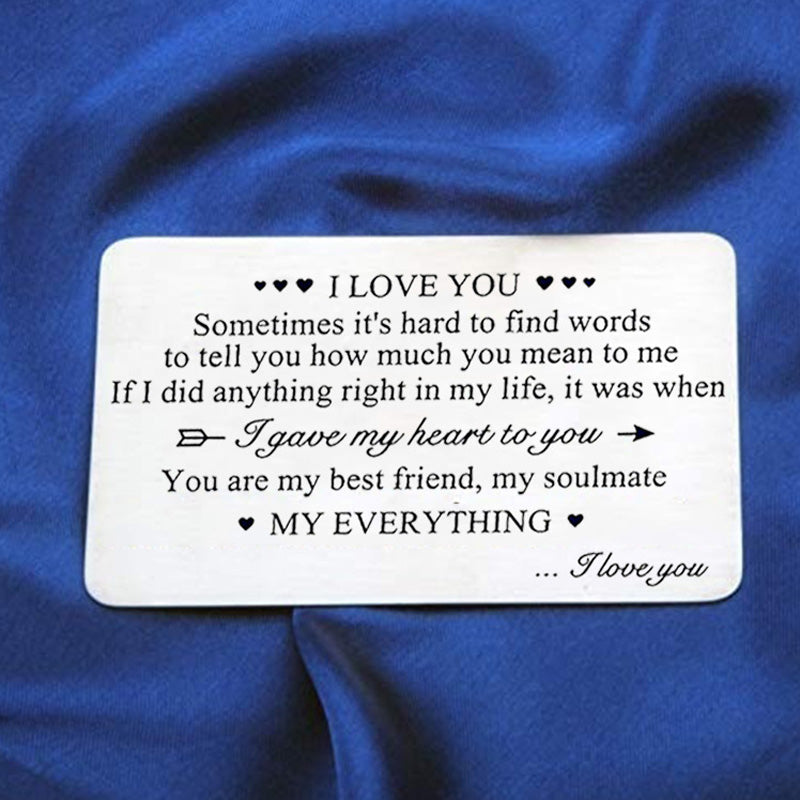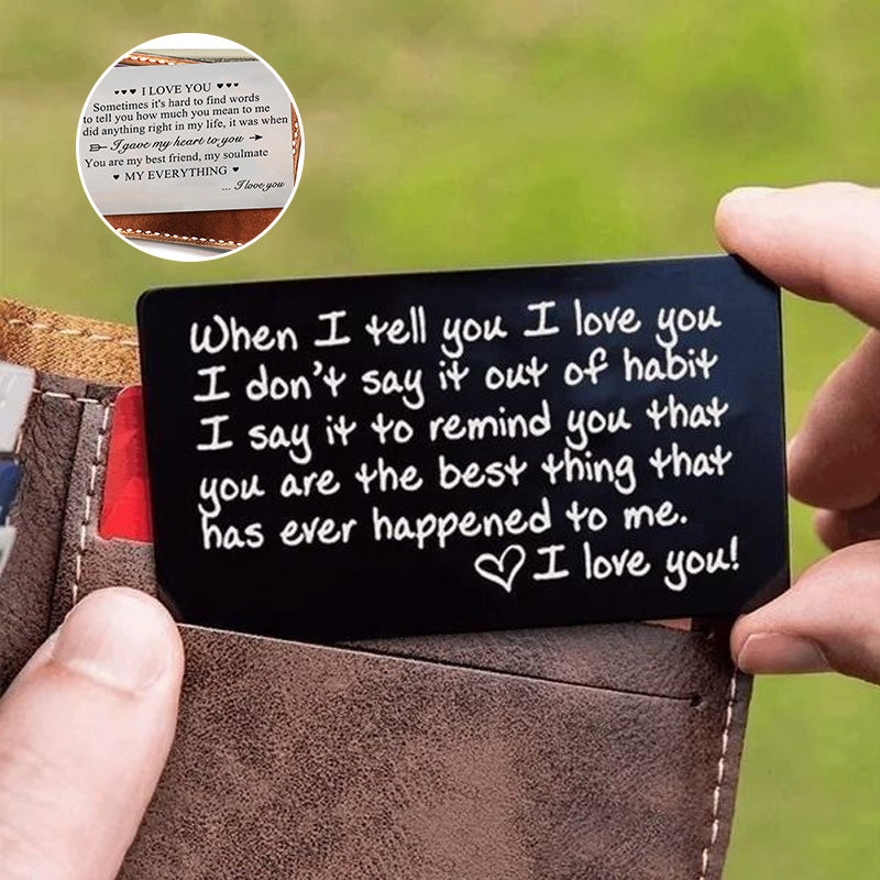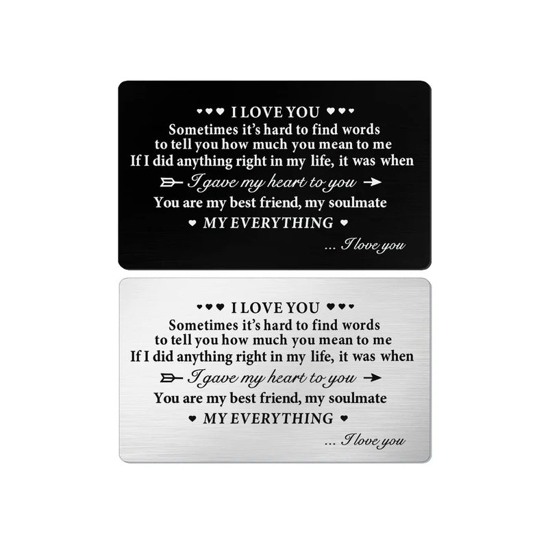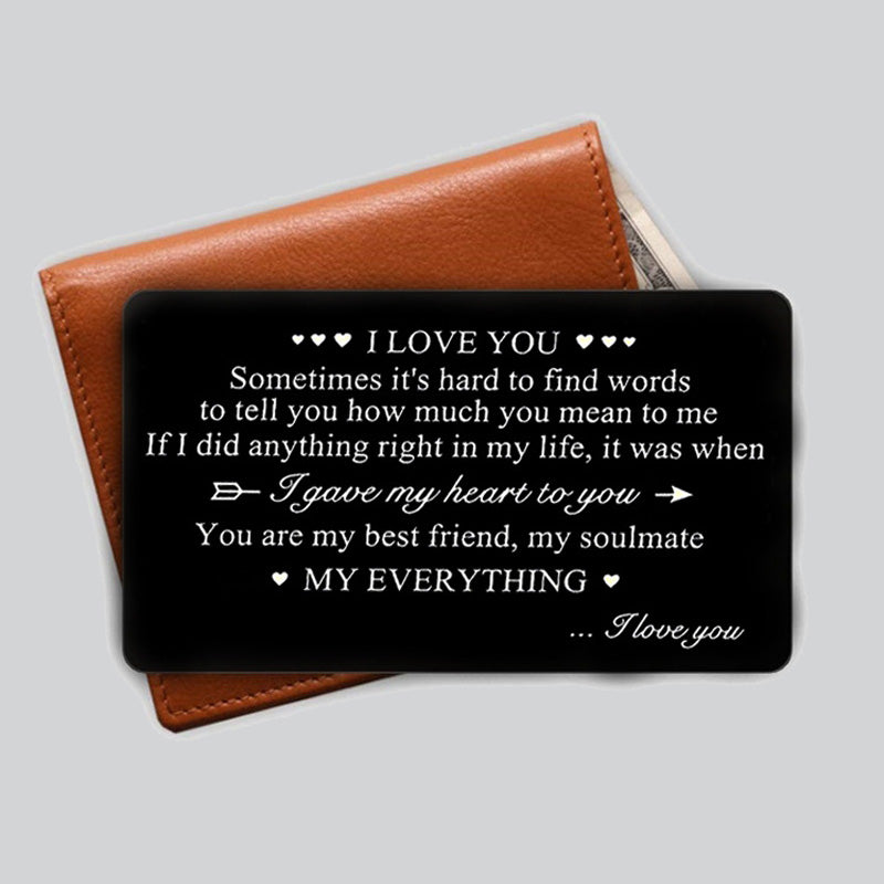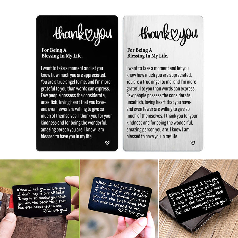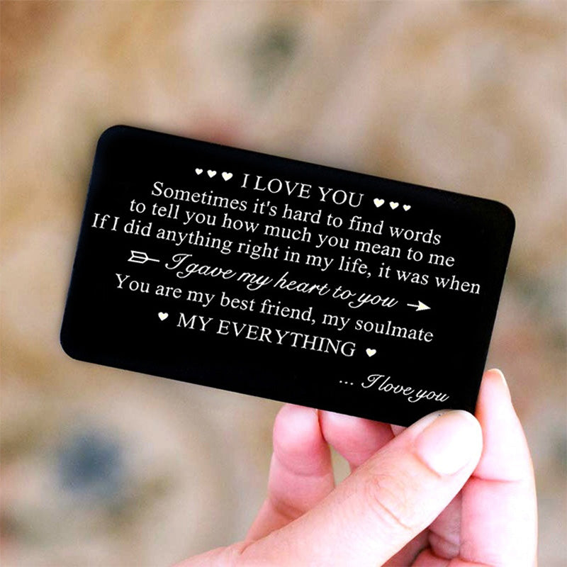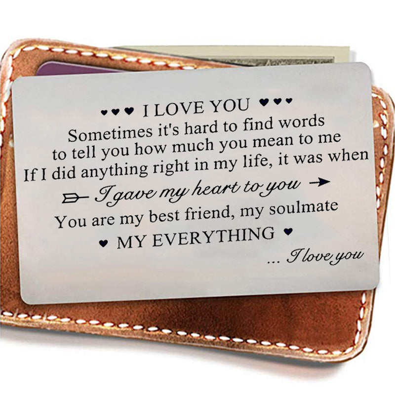 - 💖Dies ist eine Brieftaschenkarte mit Metallgravur, die in jede Brieftasche passt und etwa die Größe einer Kredit-/Visitenkarte hat. Unsere Karten sind zu einem sehr beliebten Geschenk für Jubiläen, Fernbeziehungen, Muttertag, Vatertag, Valentinstag, Weihnachten und mehr geworden.