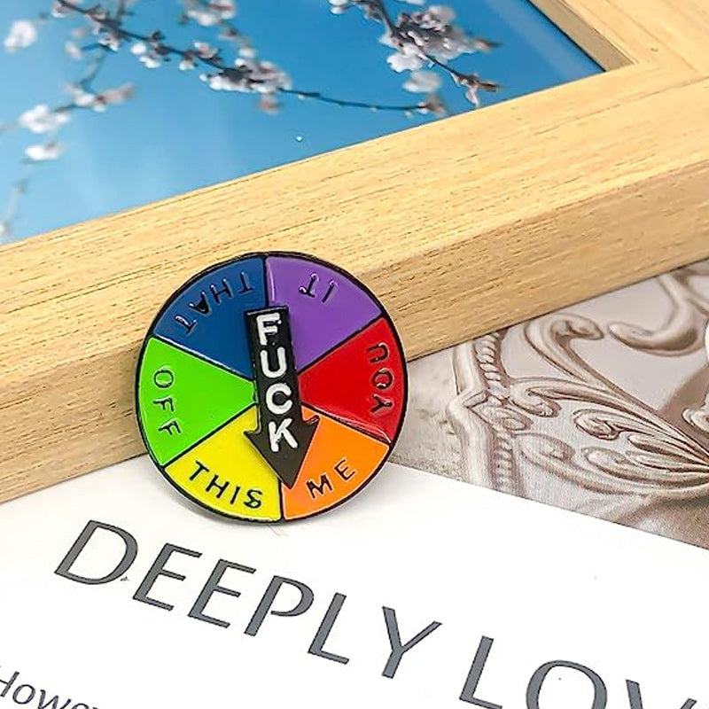 • Füge diesen lustigen FUCK-Pin zu deiner Sammlung hinzu! Für die Tage, an denen du dir über nichts sicher bist, außer der Tatsache, dass etwas FUCKED ist, lass deinen drehenden Pin entscheiden, ob es ME, YOU, IT, THAT, OFF oder THIS ist.