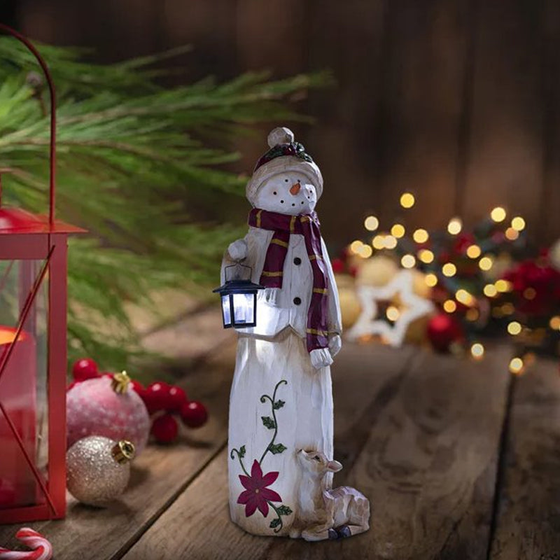 🎅🎅Unser fröhlicher Waldschneemann mit Solarlaterne macht jedes Urlaubsdisplay fröhlicher. Die stabile Schneemann-Dekoration aus Kunstharz sieht aus wie geschnitztes Holz und trägt einen Schneehut mit Stechpalme, einen roten Schal und ein freundliches Lächeln.