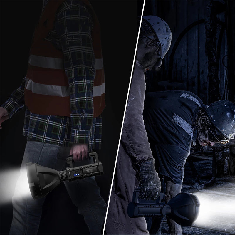 Die Scheinwerfer LED-Taschenlampe verwendet Lampenperlen der XHP-Serie, um superhelles Licht zu liefern, und die Strahlentfernung beträgt mehr als 500 Meter. Beleuchten Sie Ihren Weg nach vorne.