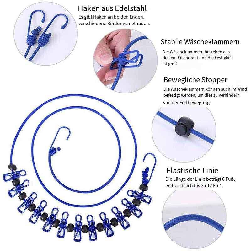 ❤☞ Multifunktionaler Clip tragbarer Reisewäscheständer mit Stahlhaken auf beiden Seiten, kann überall angebracht werden: Hotel, Bad, Waschküche, Wohnmobil, Boot, Balkon oder sogar in Bäumen