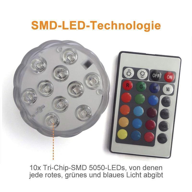 Das wasserdichte LED-Licht. Verwandeln Sie jeden Raum mühelos mit drahtlosen, ferngesteuerten LED-Leuchten. Platzieren Sie sie einfach an einer beliebigen Stelle und schalten Sie sie ein. Passen Sie Farbe und Helligkeit mühelos an.