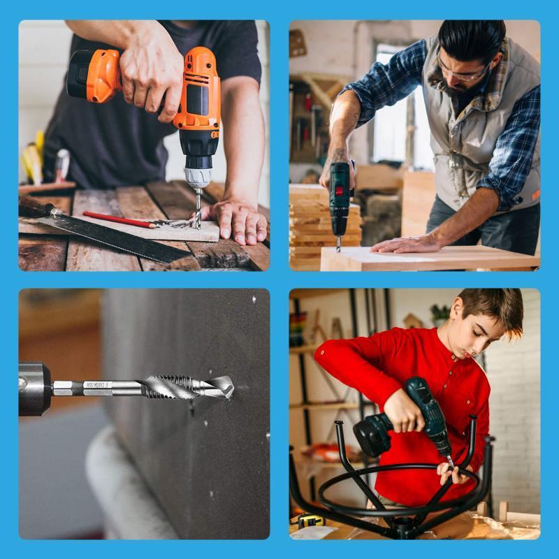 • Breite Anwendbarkeit - Geeignet zum Bohren und Gewindeschneiden von Weichmetall, Aluminiumplatten, Holz, Eisen usw. Und sie sind ideal für Autoreparaturen und Maschinen, bei denen metrische Gewinde spezifiziert sind.