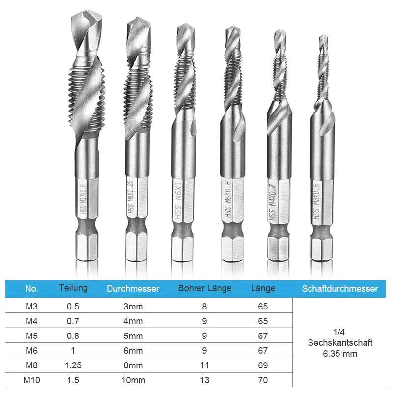 Verbessern Sie Ihre Effizienz und Arbeitsqualität mit 6 teilig Kombi Gewindebohrer Bit Satz Sechskantschaft!