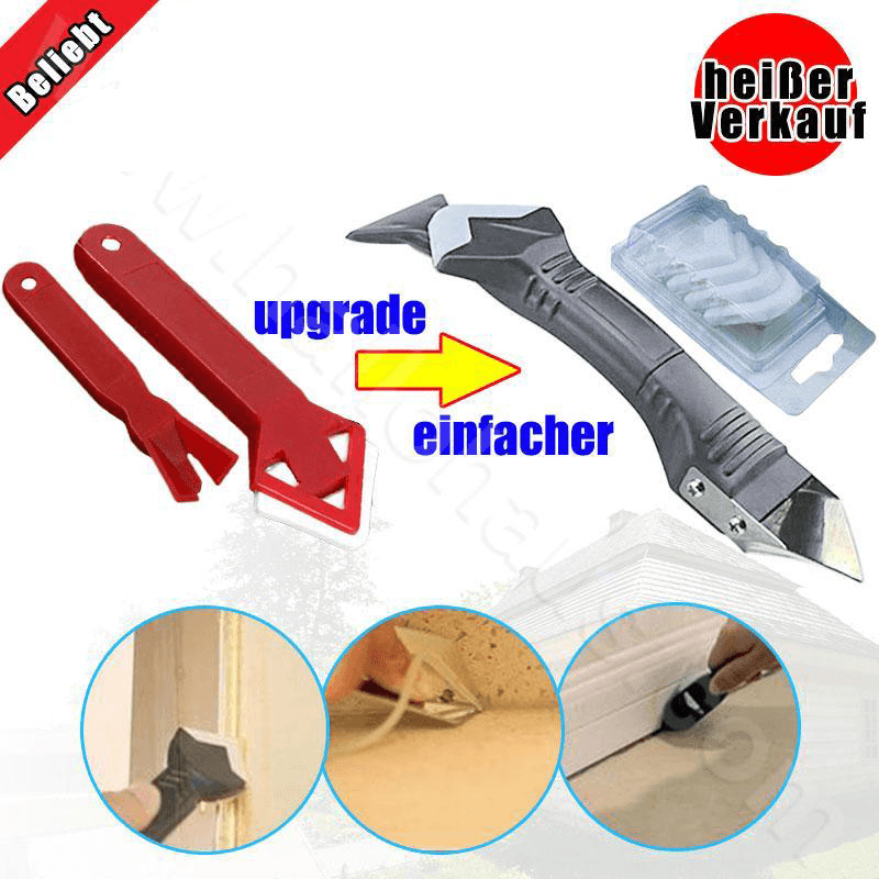 SPITZER WINKEL- Dieses Werkzeug ist für getrocknete Fugen geeignet. Der flache Edelstahl kratzt nicht an harten Oberflächen.