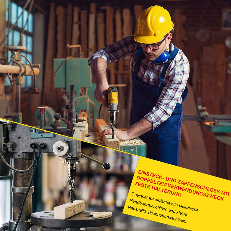 🧰【Befestigungshalterung für Vierkantlochbohrer】 Ideal für gerades oder abgewinkeltes Bohren, Bohren von Löchern an der Kante eines Blechs oder in Rundholz. Geeignet für gewöhnliche kleine elektrische Bohrmaschinen, altmodische Tischbohrmaschinen und Haushalts-Tischbohrmaschinen.