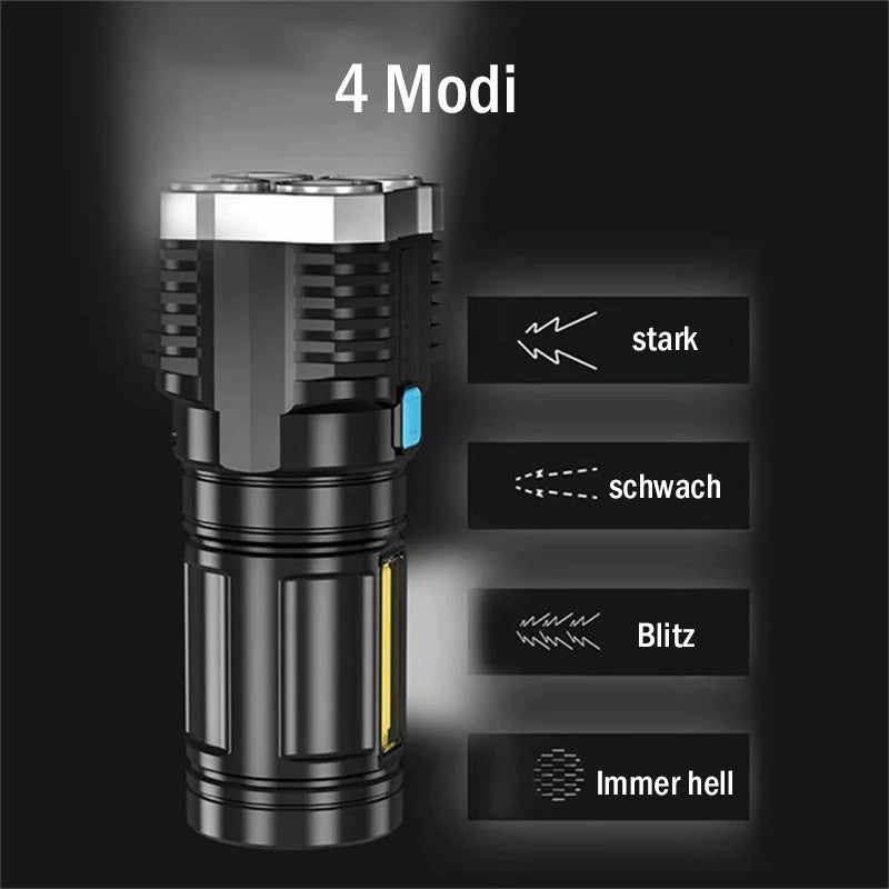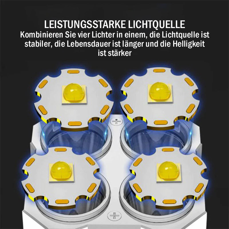 Vier starke Glühbirnen-Taschenlampen, Reichweite von 300-1000 Metern. Beleuchten Sie Ihre Welt im Dunkeln