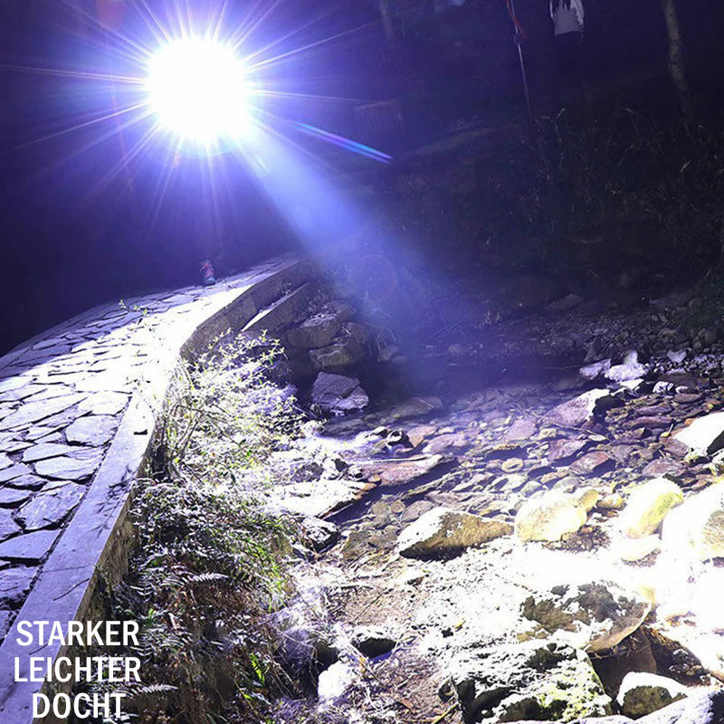 Geboren für Helligkeit: Die leistungsstarken Lampenperlen können eine ultrahohe Leistung von bis zu 100.000 Lumen erzeugen, das 40-fache von gewöhnlichen Glühlampen, und problemlos einen Spielplatz beleuchten oder Objekte bis zu 3280 Fuß fokussieren! Die Taschenlampe ist mit einer Blitzfunktion für Fernbeleuchtung ausgestattet. Blitzlichter eignen sich zur Alarmwirkung in Notsituationen.