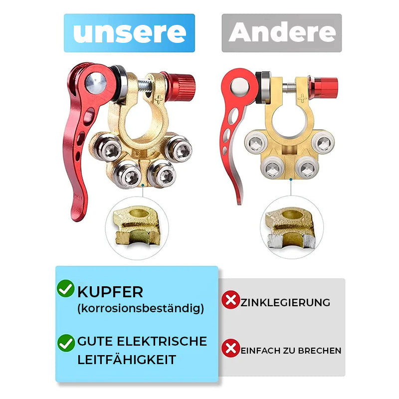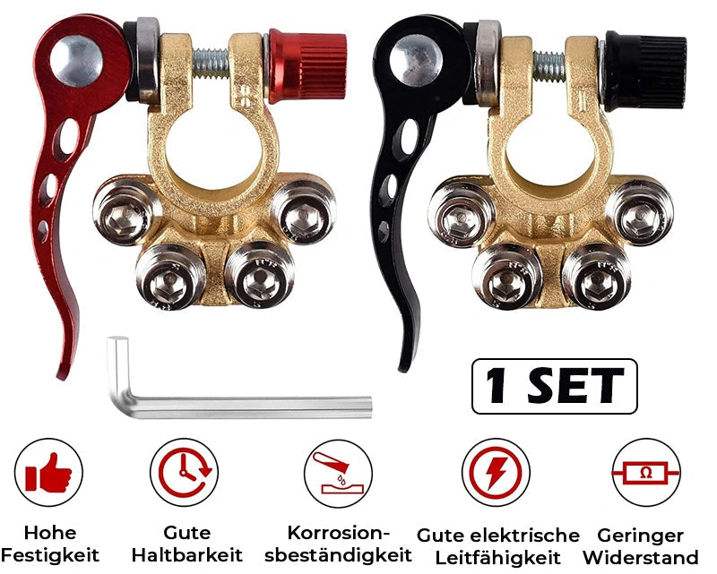 • Die Plus- und Minuspole sind für die meisten Batteriemodelle geeignet. Ideal zum Ersetzen verschlissener und korrodierter Klemmen.