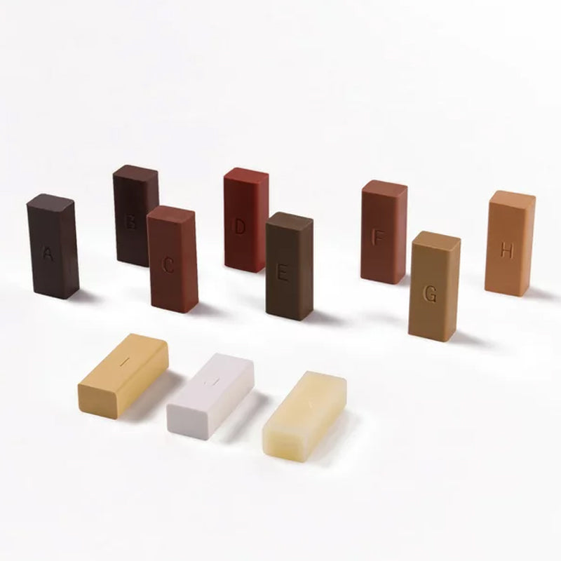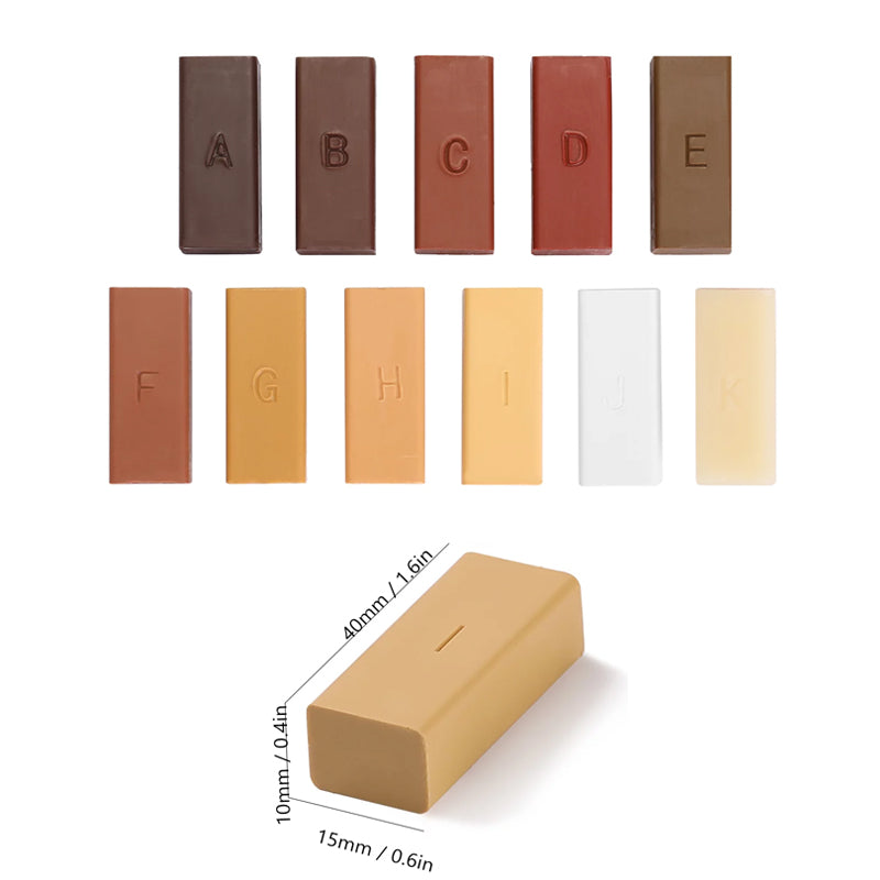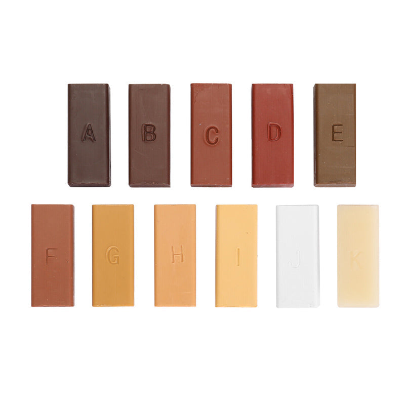 • Stellen Sie die Farbe Ihrer beschädigten Bretter einfach wieder her, indem Sie die 11 Wachsstöcke mischen.