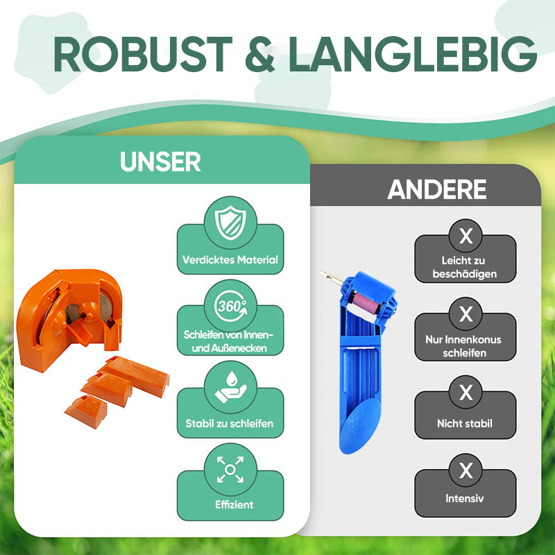 Er besteht aus hochwertigem Abs-Kunststoff und einer Korund-Schleifscheibe, die Eisenbohrer effektiv schleifen kann.