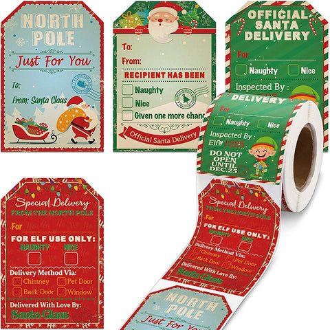 🎅Ausreichende Menge: Sie erhalten 1 Rolle Weihnachtsmann-Geschenkanhänger-Etiketten in 4 verschiedenen Stilen, 50 Stück für jedes Design, 200 Stück insgesamt, genug, um Ihren verschiedenen dekorativen Anforderungen an Weihnachten gerecht zu werden