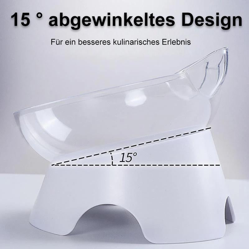 Ingeniöses Design Für wissenschaftliche Fütterung: Gekipptes 15-Grad-Design zum Schutz der Halswirbelsäule der Katze.