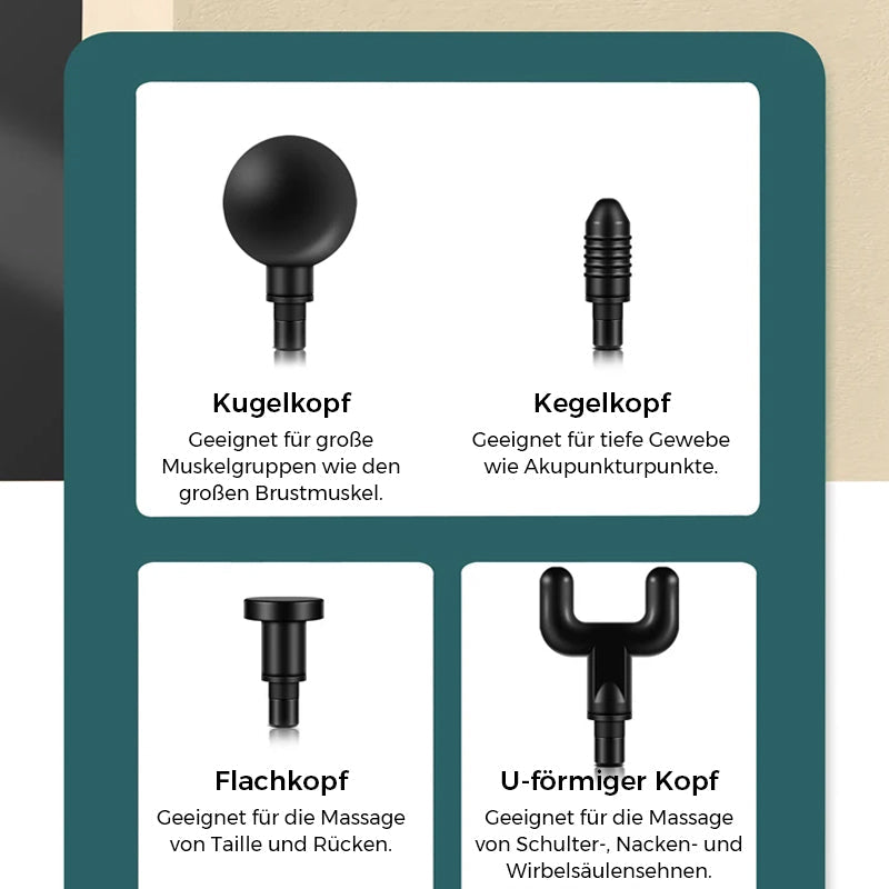 4 Massageköpfe für den ganzen Körper: Das komfortablere Massagegerät verfügt über 4 austauschbare Massageköpfe, mit denen Nacken, Schultern, Rücken, Arme, Oberschenkel usw. massiert werden können. Für alle Ihre Massagebedürfnisse.