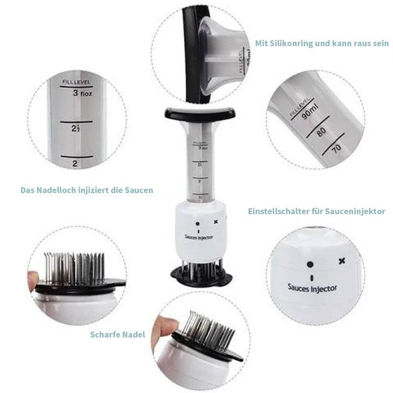 Die Nadeln stechen jedes Fleisch oder Geflügel mühelos durch und sorgen so dafür, dass Sie den Geschmack von harten oder dicken Schnitten bereichern können. Seien Sie jetzt ein Kochmeister mit diesem Injektor für die Küche zu Hause und die Grillparty im Freien!