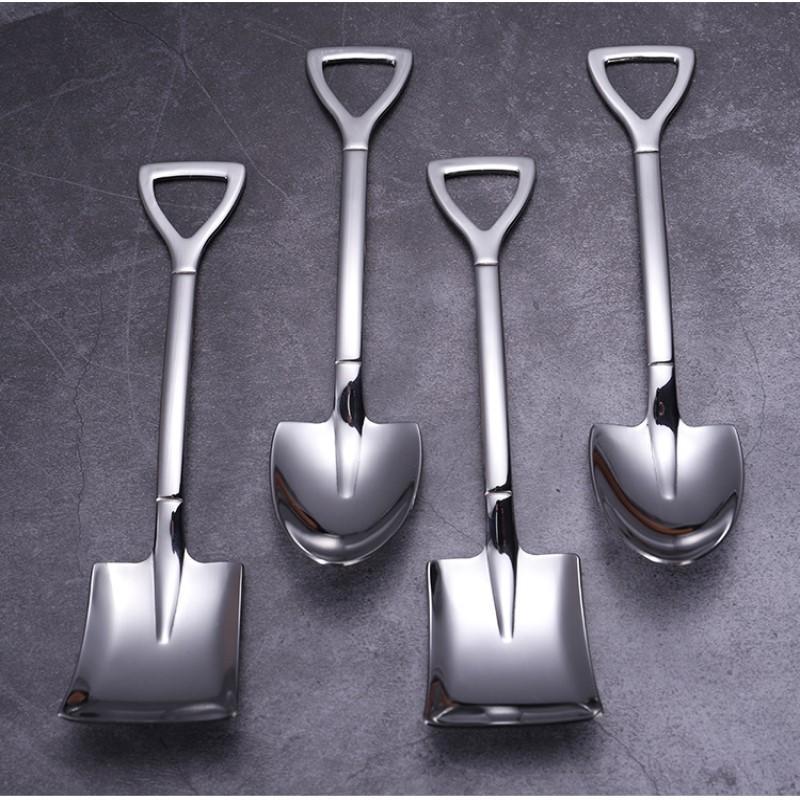 Süßes schaufelförmiges Design, Rührlöffel aus Edelstahl, langlebig, elegant hochglanzpoliert. Es ist außerdem pflegeleicht, spülmaschinenfest und leicht zu reinigen.