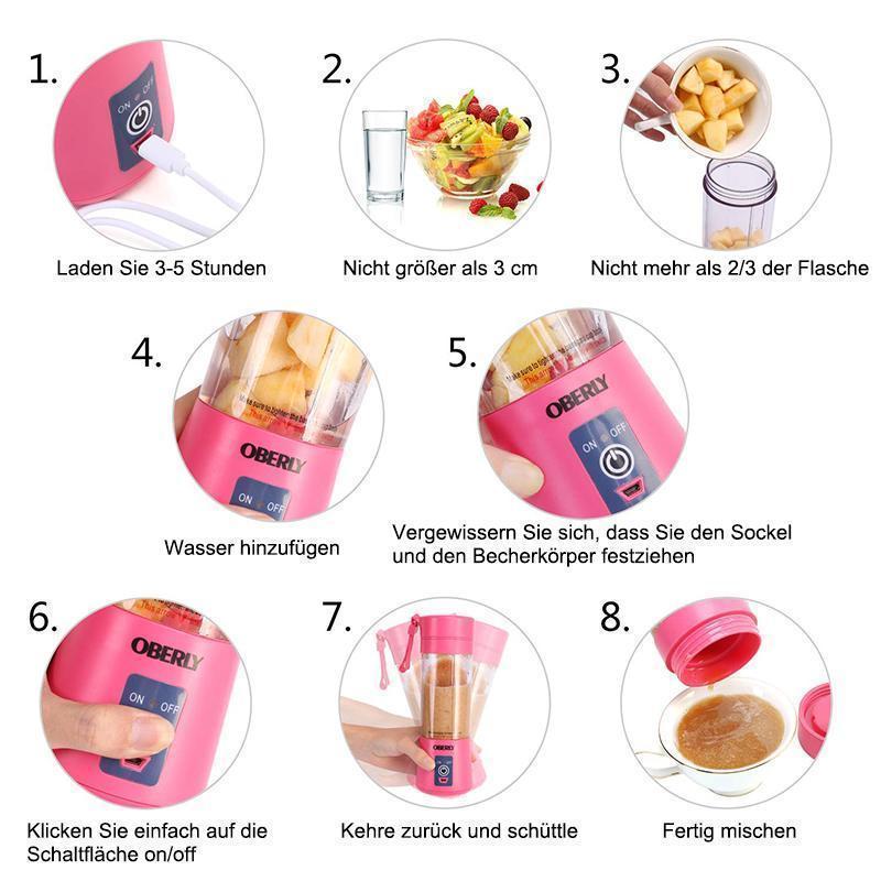 - LEICHT ZU TRAGEN: Dieser Entsafter lädt einfach mit einem USB-Kabel auf, und hat eingebaute Batterie. Perfekt für Reisen, Büro, Schule und Outdoor-Aktivitäten.