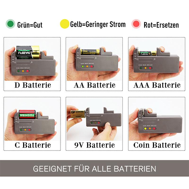 Herausnehmbarer Leistungstester- Überprüfen Sie Ihre Batterien (auch wiederaufladbar und Lithium) und werfen Sie nie wieder eine gute Batterie heraus. Der Tester wird direkt von der zu testenden Batterie gespeist.