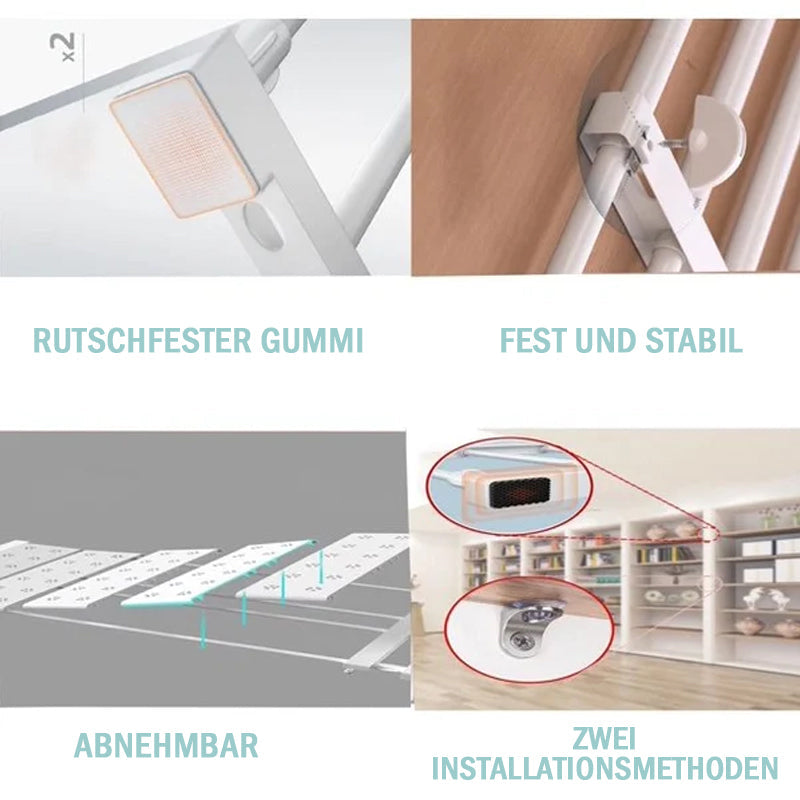 - Wird Ihre dekorativen Wände nicht beschädigen: Innerhalb des ausziehbaren Bereichs auf Ihre gewünschte Länge einstellbar, wählen Sie einfach stabile Seiten wie Fliesen, Wände, Kleiderschränke.