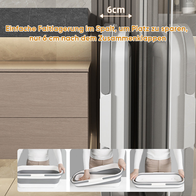 Tragbarer stabiler Eimer aus strapazierfähigem Kunststoffmaterial lässt sich in wenigen Sekunden auf eine kompakte Größe zusammenfalten und ist somit ein absolutes Platzwunder beim Verstauen oder unterwegs.