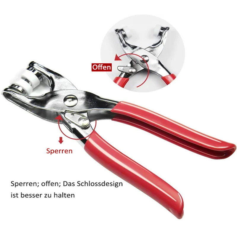 Kein Hammer erforderlich. Es ist nicht erforderlich, zuerst ein Loch zu bohren. Folgen Sie einfach unseren Videos oder lesen Sie die Installationsanleitung und Sie können machen, was Sie wollen. Nachdem Sie die Druckknöpfe auf dem gewünschten Tuch installiert haben. Der Stoffschnapper wird nicht herunterfallen, da die fünf scharfen Ecken den Schnapper stabil machen können.