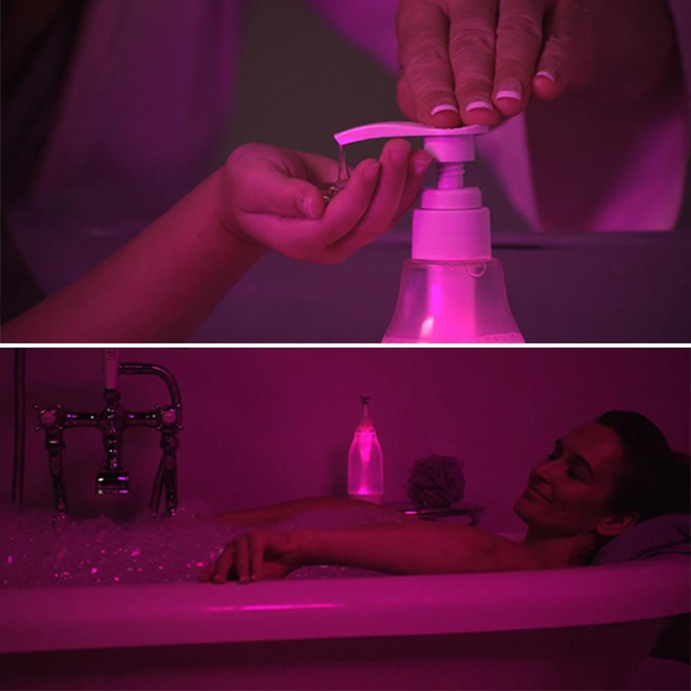 - Mehrzweck: Der Seifenspender kann leicht mit klarem Handwaschmittel, Shampoo, Conditioner oder Händedesinfektionsmittel gefüllt werden, das dann als Lichtdiffusor wirkt und das warme, entspannende Licht im Raum verteilt.