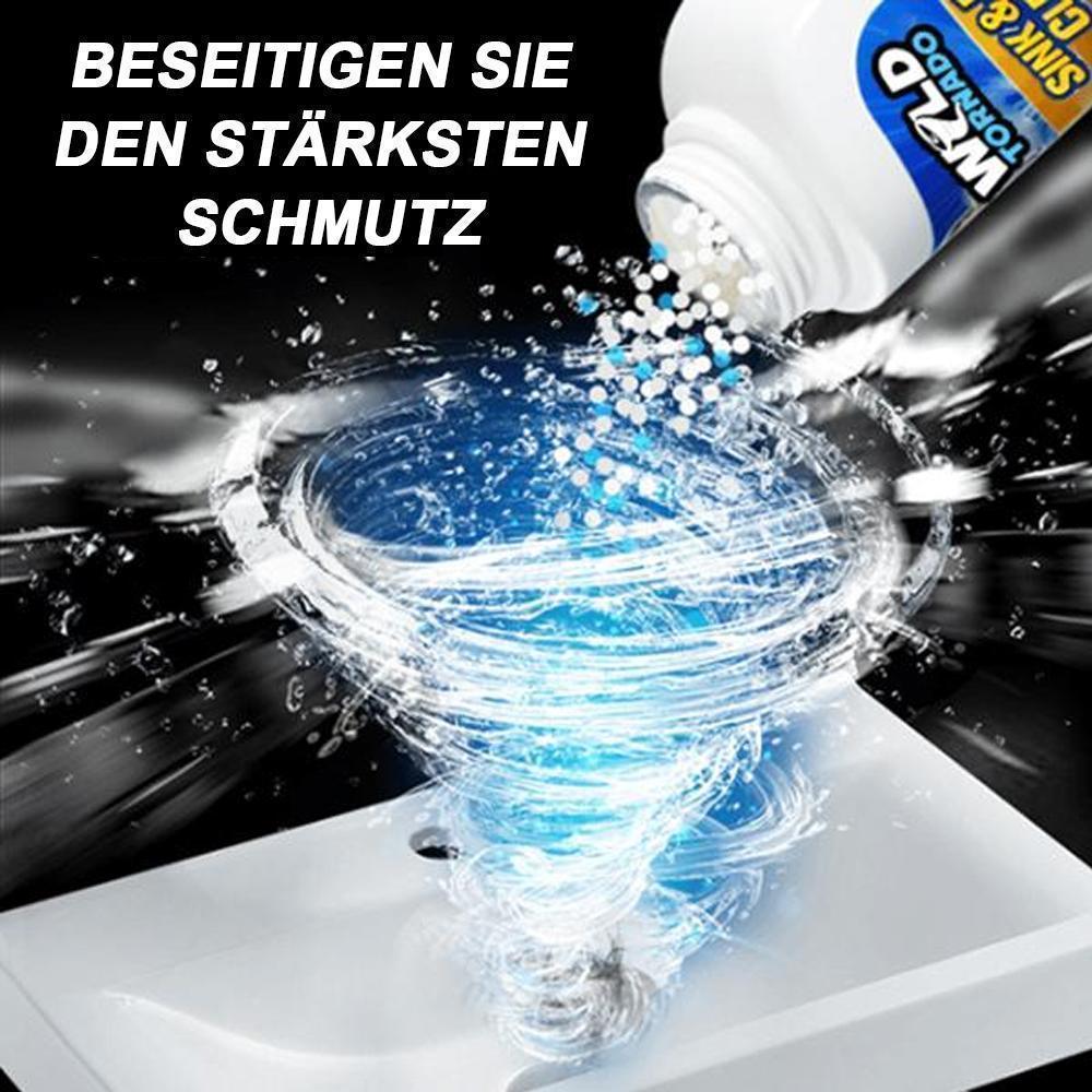 Leistungsstarker Waschbecken- und Abflussreiniger erledigt die Aufgabe, indem er leicht Fett, Haare, Papier, Seifenschaum, Öle und organische Substanzen löst.