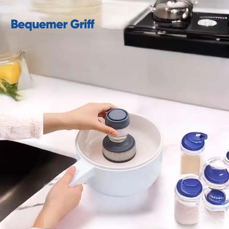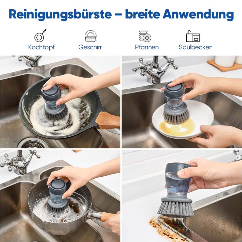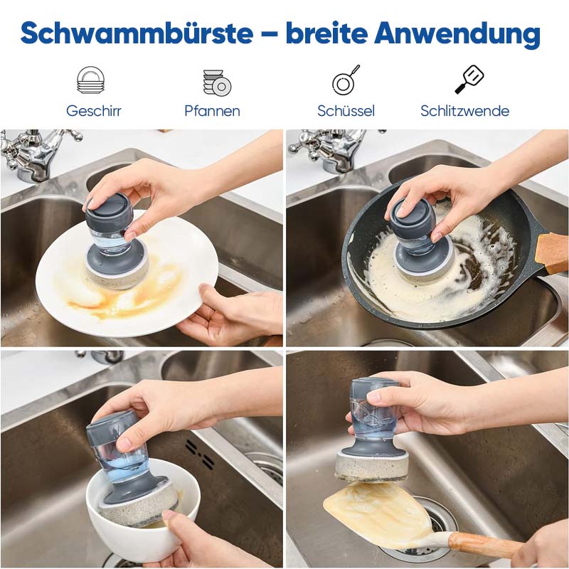 EINFACH ZU VERWENDENDER NACHFÜLLBARER SPENDER: Unsere Küchenbürste und Scheuerschwämme sind mit kleinen, nachfüllbaren Behältern in den Griffen ausgestattet, aus denen Sie Schaumseife oder Flüssigseife auf Knopfdruck abgeben können, für eine schnellere, einfachere und gründlichere Reinigung.