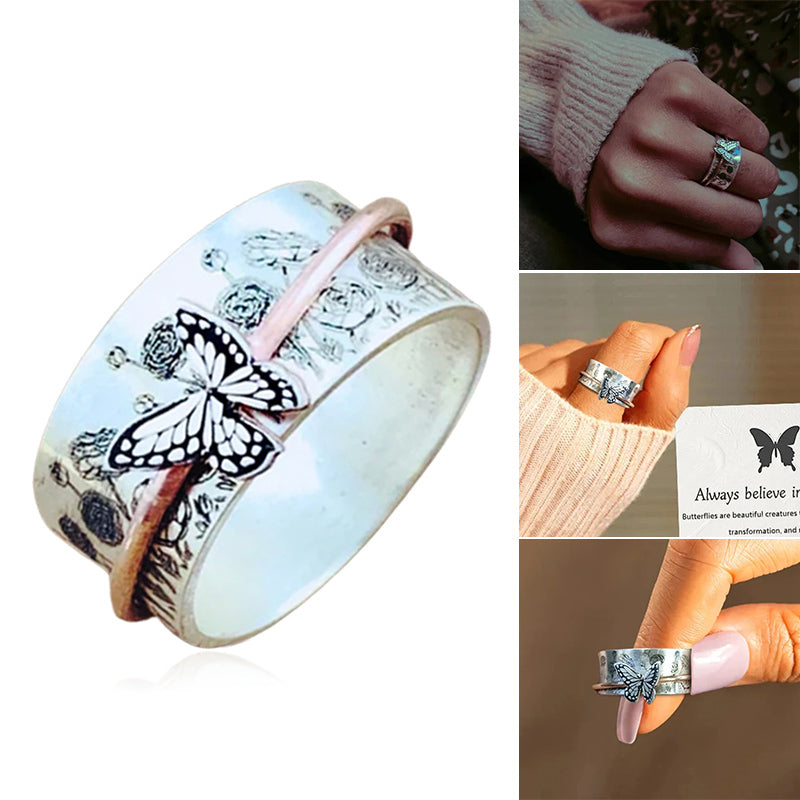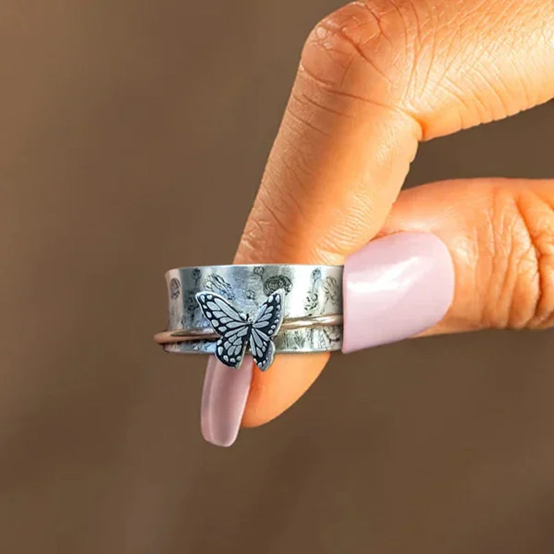 👉Doppellagiger Drehbarer Schmetterlingsring👈