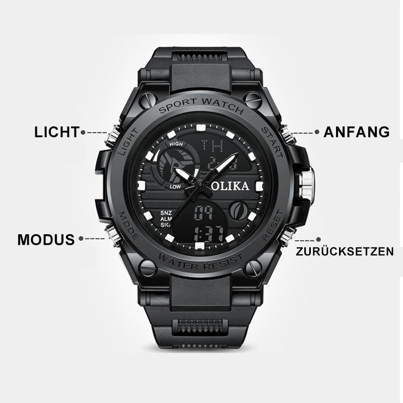 • ✈ Multifunktionale Sportuhr: mit Stoppuhr, Dualzeitanzeige, unabhängigem Alarm, 12/24H Zeit, Kalender, LED-Hintergrundbeleuchtung, wasserdicht, stoßfest und weiteren Funktionen. Diese Eigenschaften machen es zur perfekten Wahl für alle Arten von Outdoor-Sportarten und den täglichen Gebrauch.