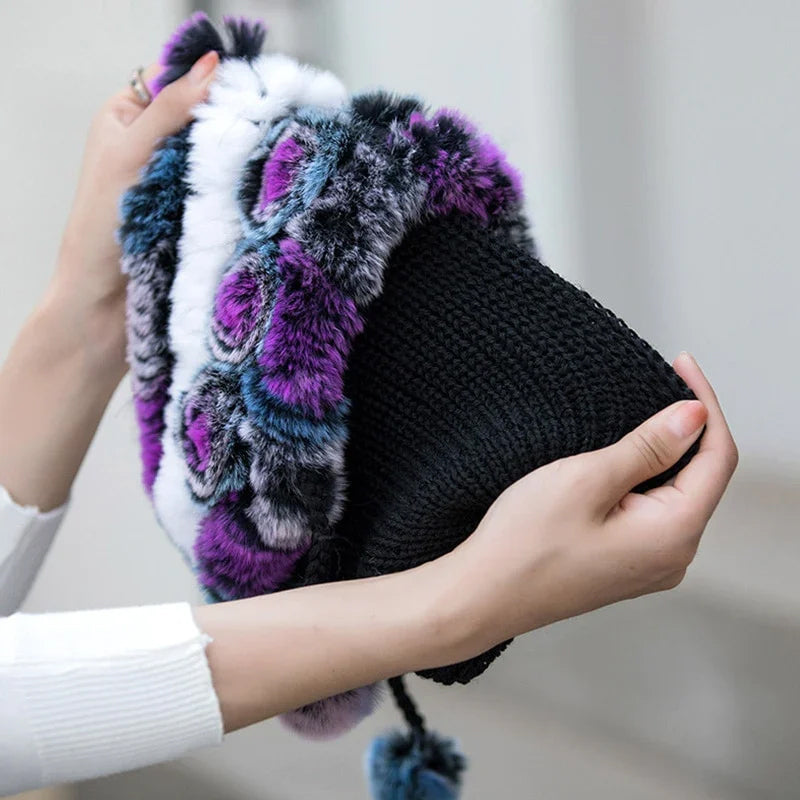 - 1 * Warme Blumen gestreifte Kaninchenfellmützen