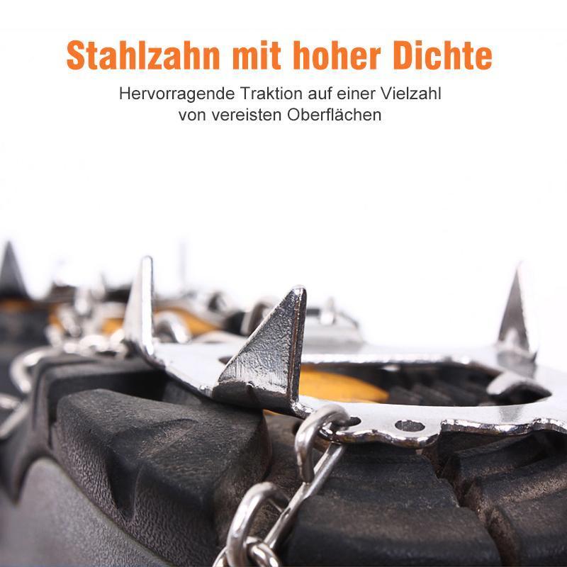 - 18 hochfeste Manganstahlzähne bietet eine hervorragende Traktion auf einer Vielzahl von vereisten Oberflächen.